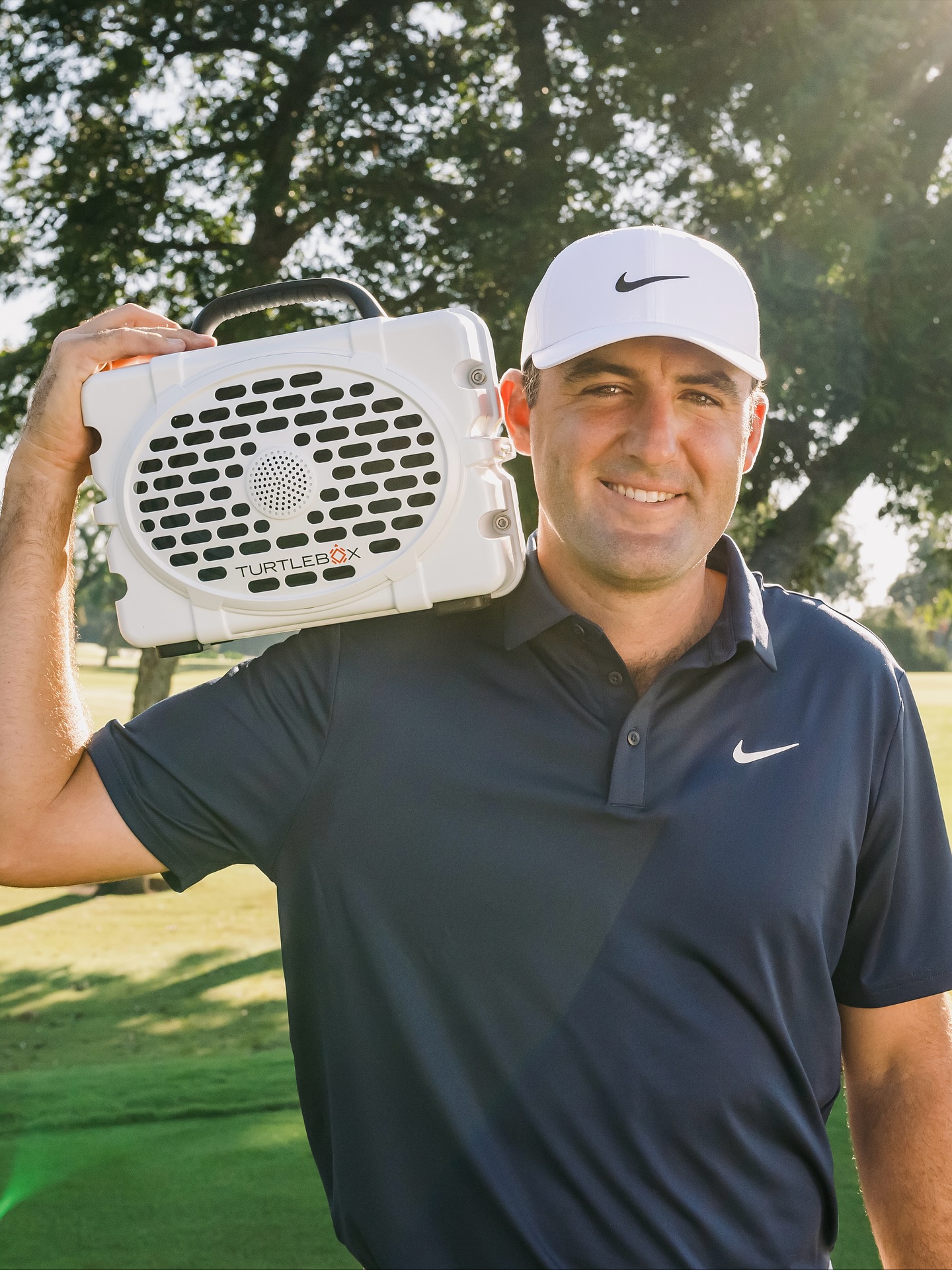 In the brand photo, Scheffler looks relaxed — holding a Turtlebox speaker over his shoulder like he’s ready for a tailgate or backyard session. It’s a different kind of flex from the greens: approachable, human, and perfectly on-brand for both player and product.